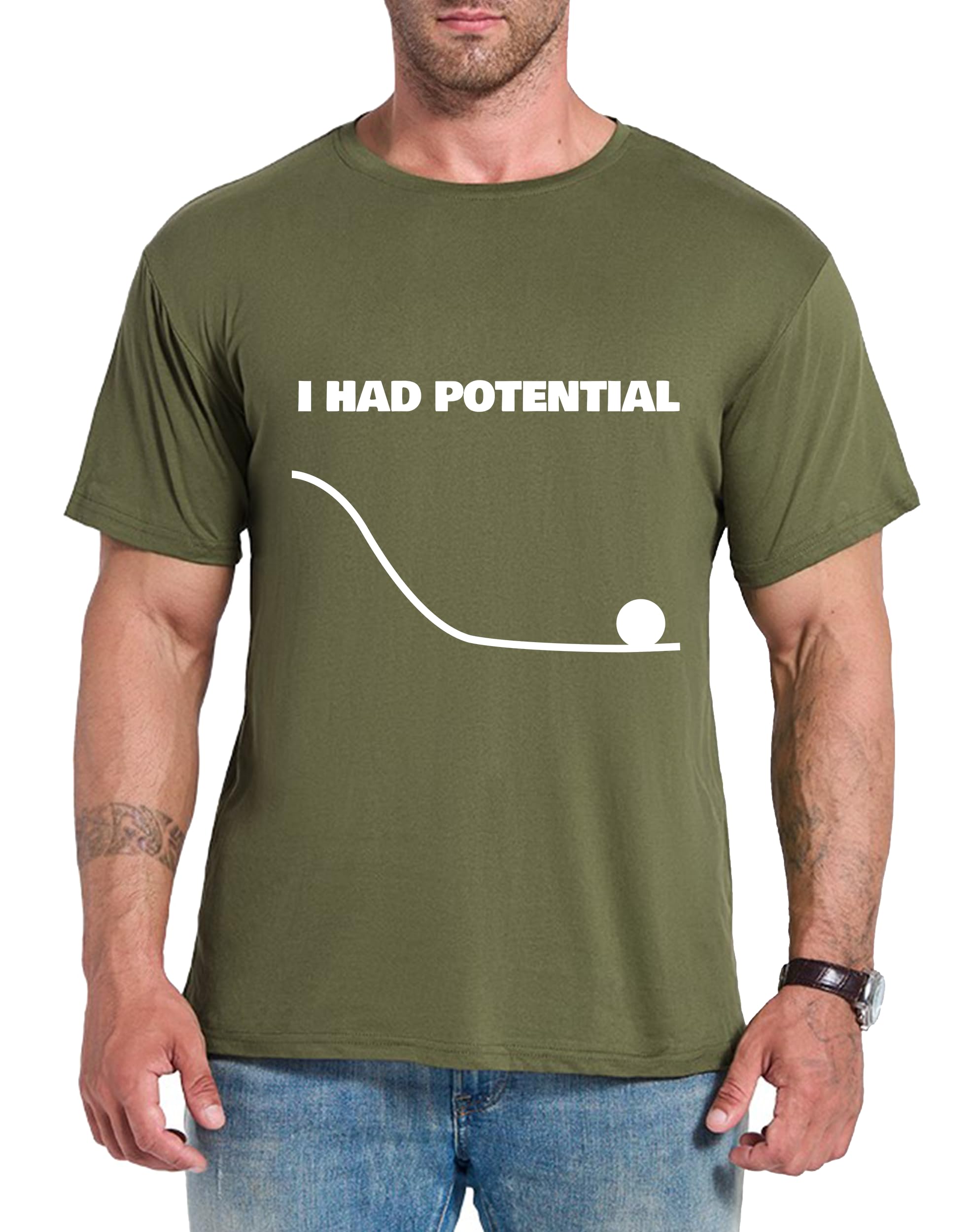 Haul Amount $0.01—Geek I Had Potential - Funny Shirts For Men Teacher Shirt Physics Tee Cotton Tee Army Green.