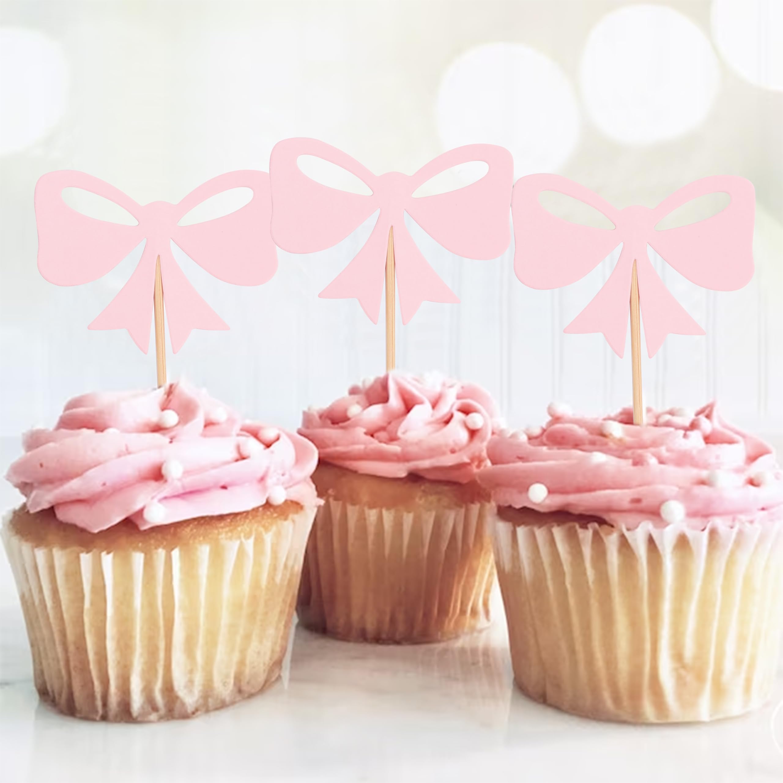 • The cute design of these paper bowknot cupcake toppers adds a personal touch to any dessert. Their adorable appearance makes them a great way to show attention to detail and add a special touch to celebrations. "Add a touch of sweetness to your celebration with these adorable Pink Bow Cupcake Toppers! For just $2. 00, you can elevate your desserts and make your party unforgettable