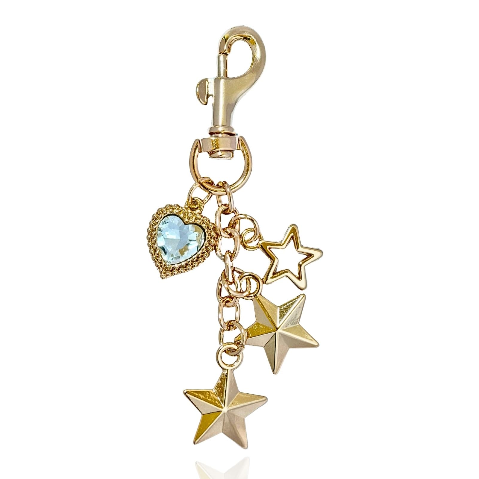 • Meefisher Gold Silver Star Keychain features a metal heart and rhinestone design.