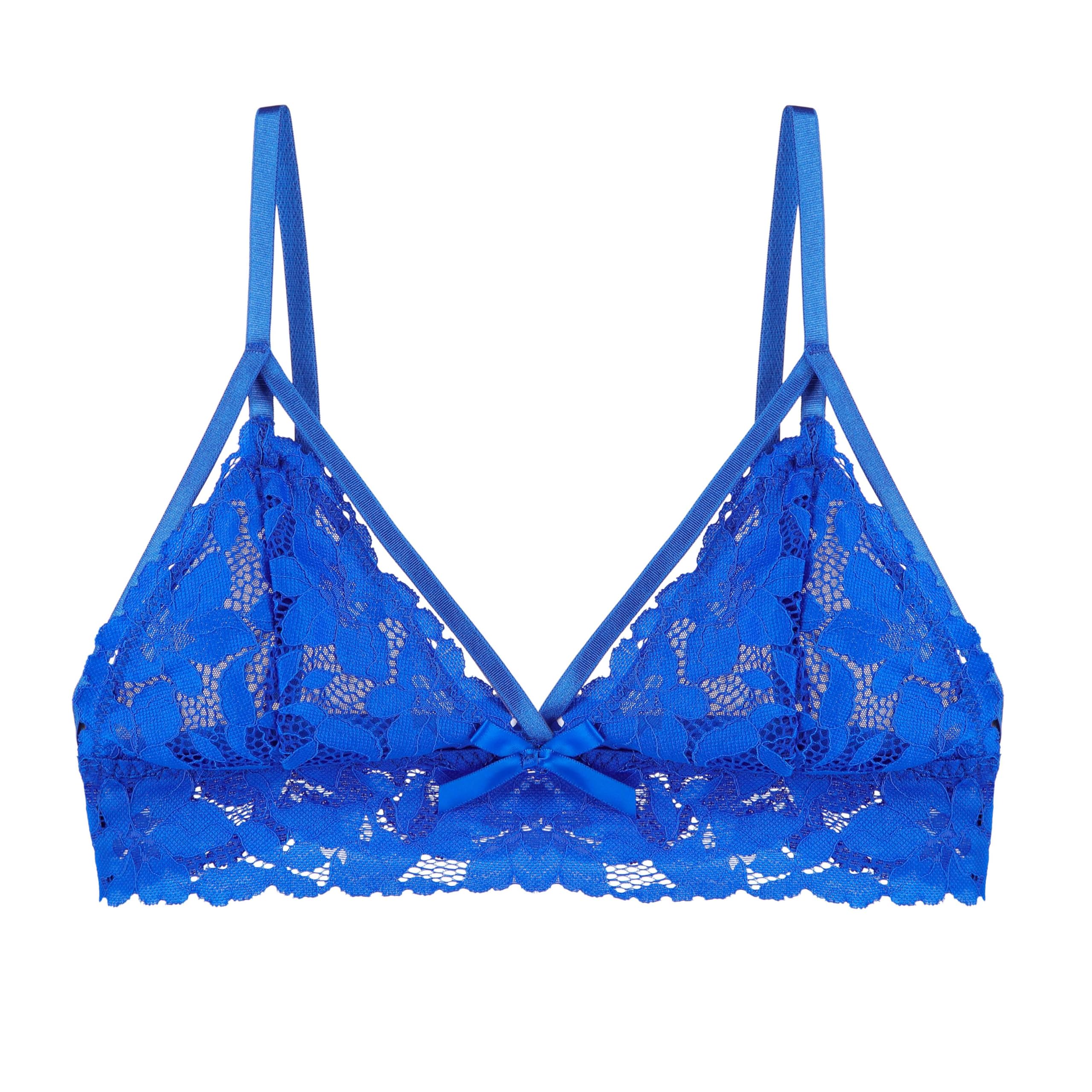 * Made of lace material for a delicate look * No underwire design for added comfort * Unlined plunge style for a natural shape * Bandage details and bowknot accents for a decorative touch * Available in blue color for a unique twist * Currently discounted by 80% from original price to $2. 00, a significant reduction as of February 2026