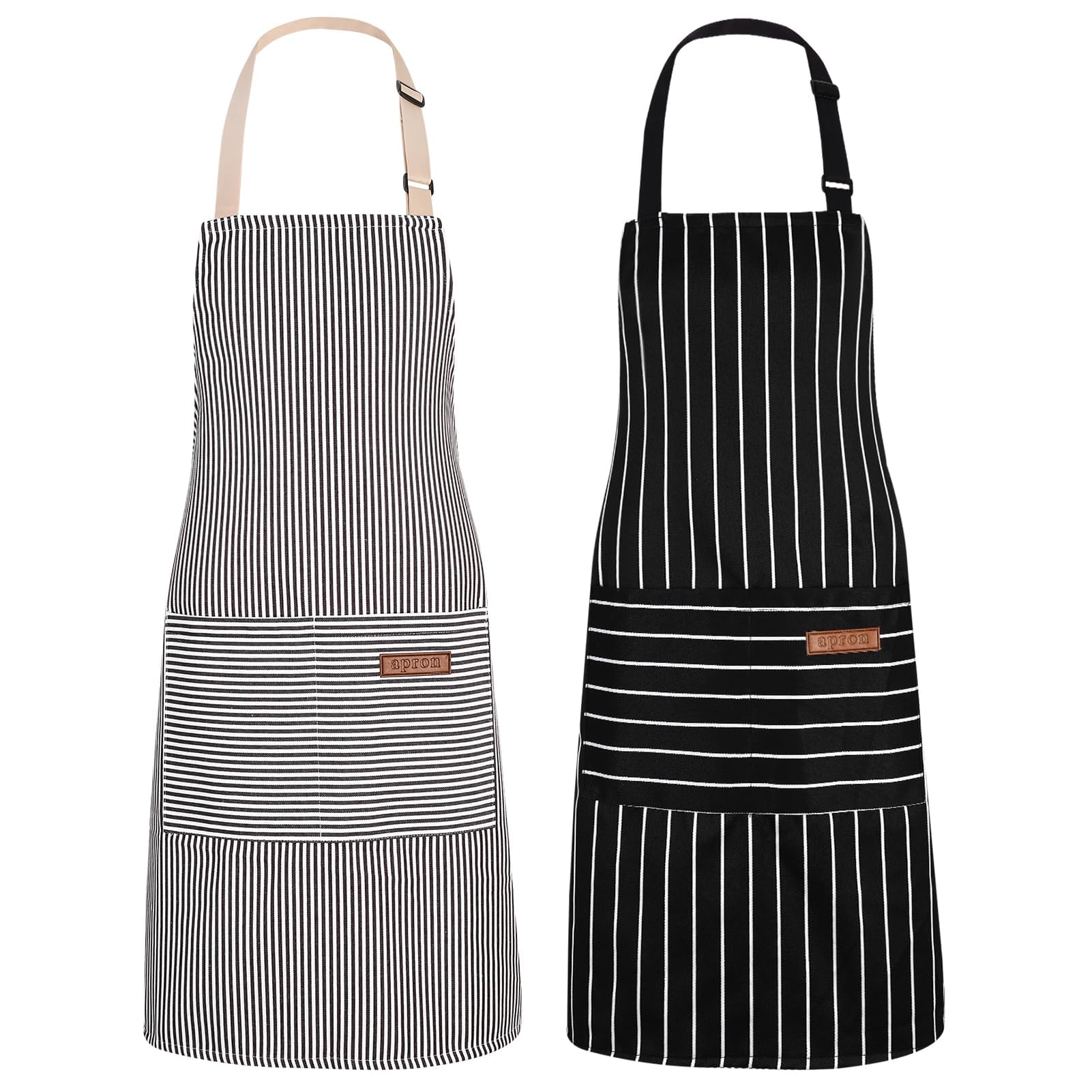 Adjustable neck strap and extra-long ties for a customizable fit, allowing for a comfortable cooking experience, incorporating ergonomic design principles, and facilitating ease of movement, with ... — ZAIORD 2Pack Adjustable Kitchen Apron for Women Men with 2 Pockets,Cotton-Polyester Blend Bib Aprons for Cooking,Baking(Black+Grey) — $7.99TLDR Check here.