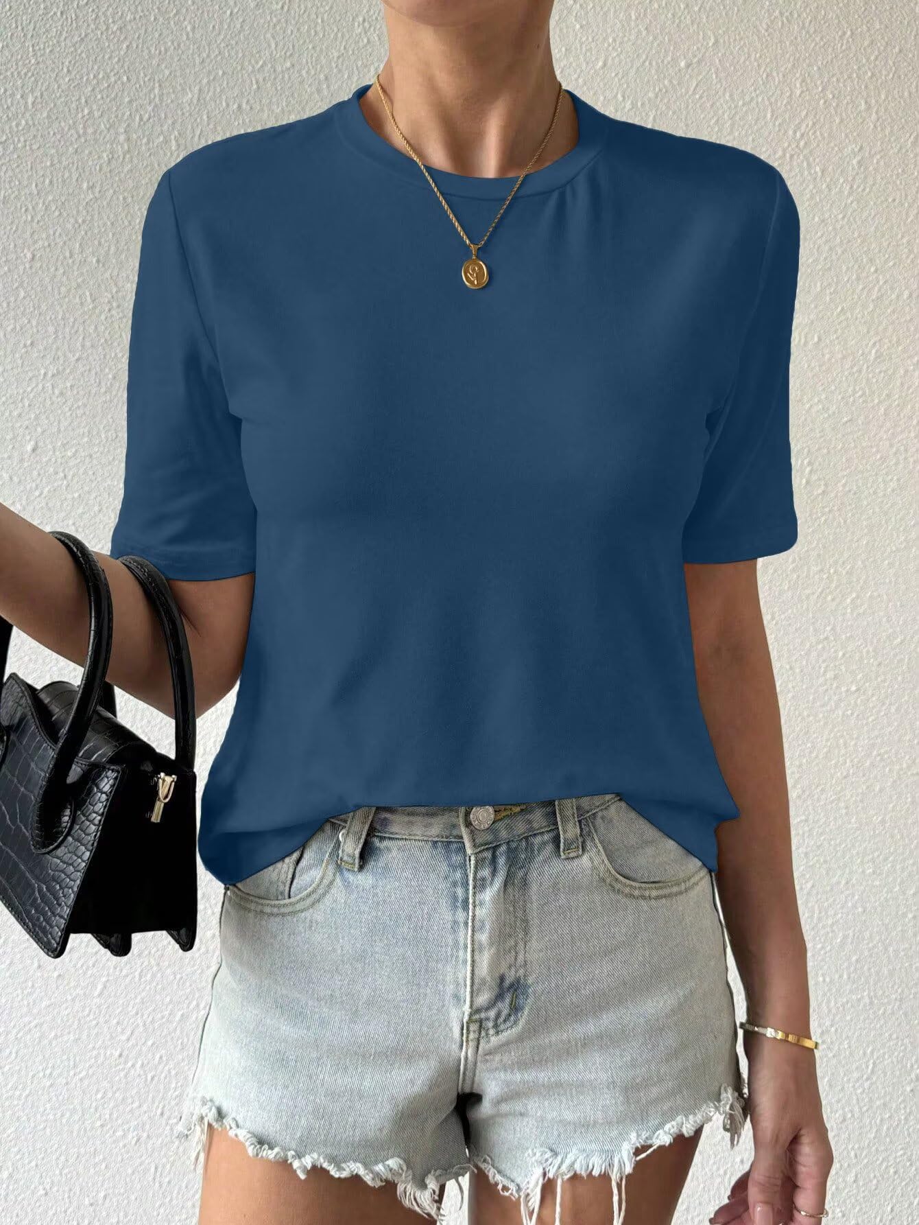 At $2.77—Women's New Summer Casual Loose Round Neck T Shirt Comfortable Fashion Sports Top(LS) M Blue.