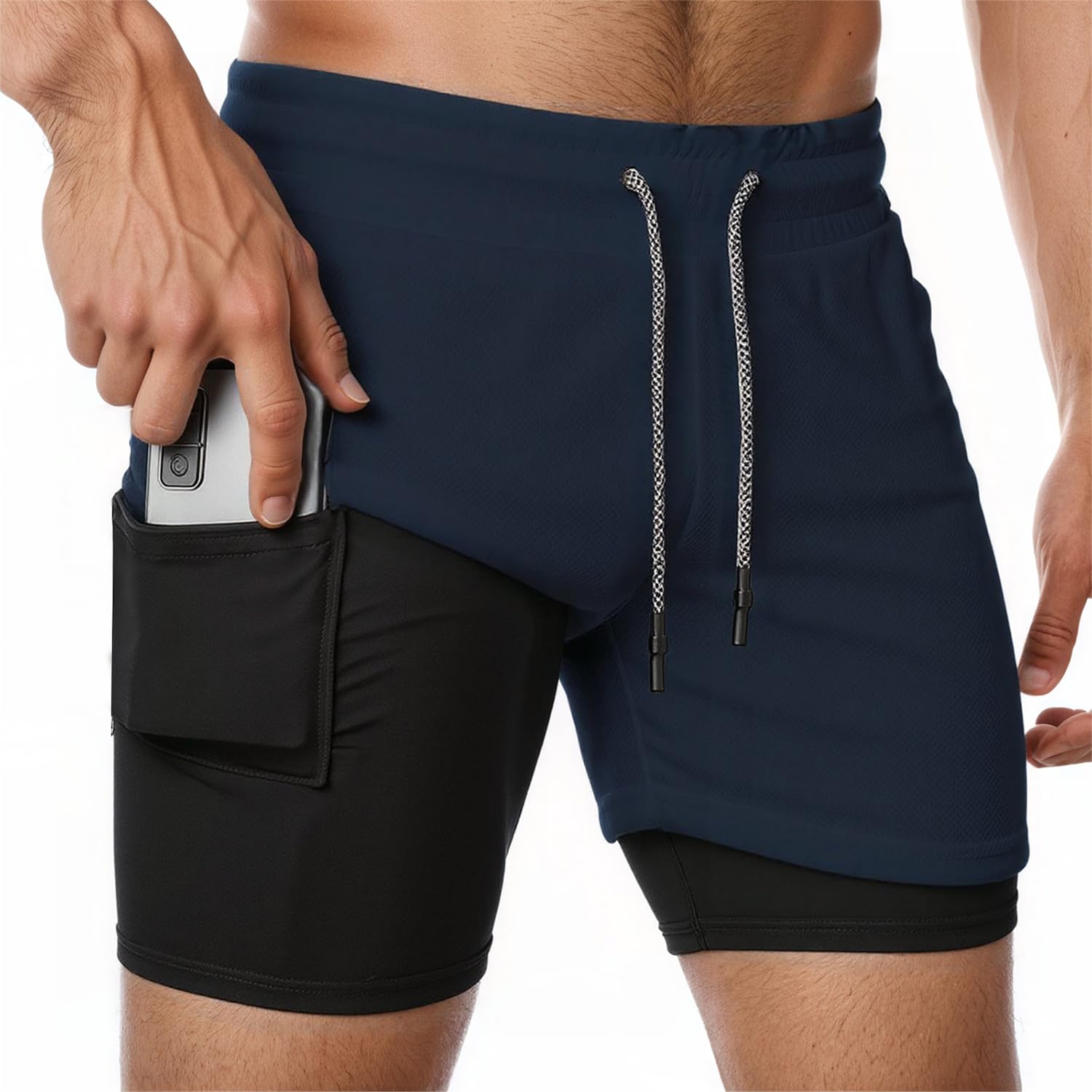 In the vast expanse of athletic wear, a humble hero emerges, the FLASH GRAB Running Shorts for Men, a testament to the ingenuity of modern textile design, where the confluence of form and function gives birth to a garment that is at once a marvel of lightweight construction and a paragon of practicality. These navy blue shorts, with their athletic cut and sleek silhouette, evoke the streamlined elegance of a sports car, while their multitude of pockets - a feature that has assembled widespread acclaim among consumers - provide a level of convenience akin to having a trusty sidekick always by one's side. One of the most useful features of these shorts is their ingenious pocket design, which allows for the secure storage of small essentials, such as keys, phone, and wallet, thereby freeing the wearer from the encumbrance of bulky bags or the constant fear of misplaced items.