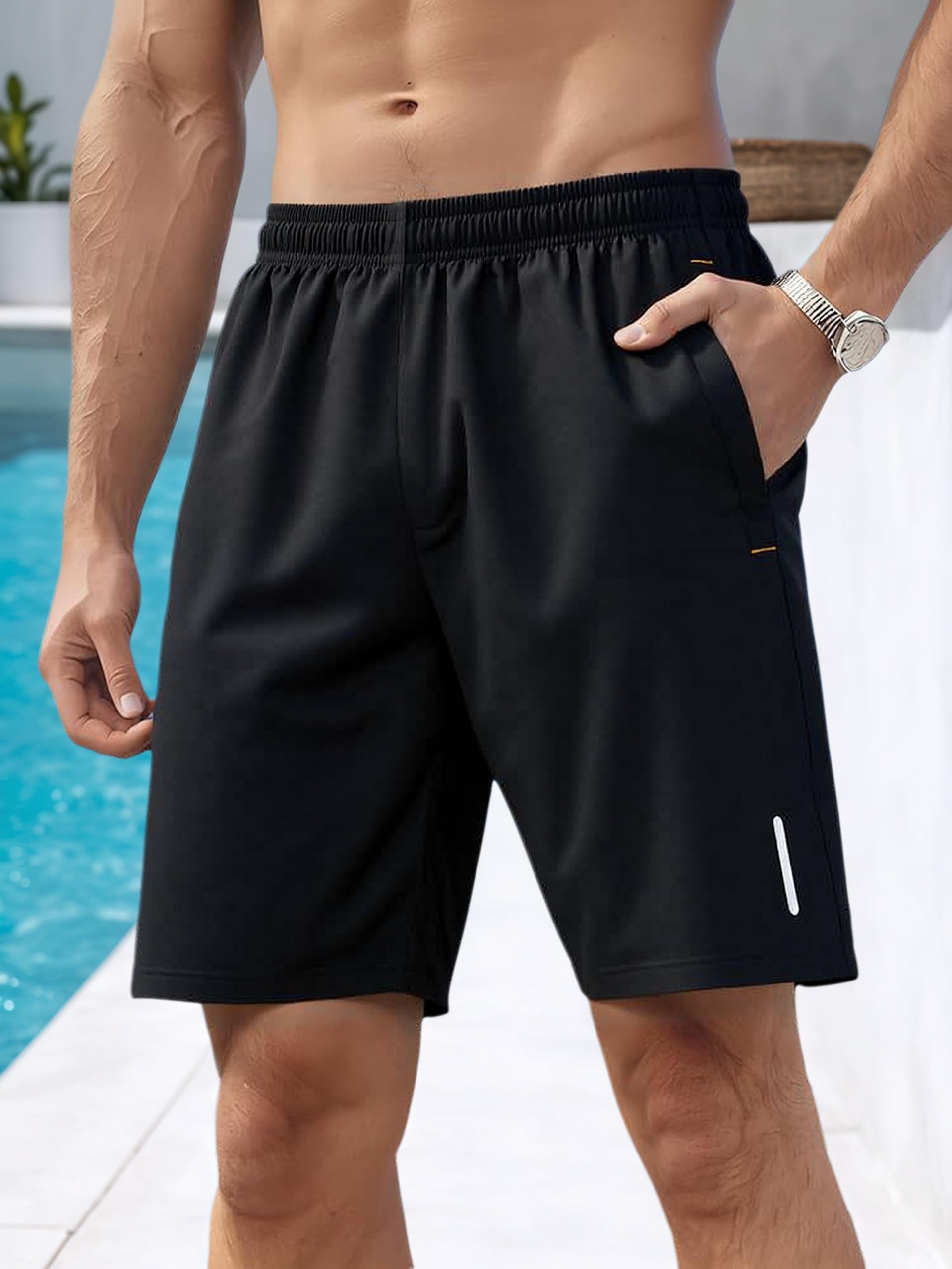 Made from a lightweight material for breathability and ease of movement • — Men's Casual Shorts Elastic Waist with Pockets for Gym Running Sports Black — $0.90No Time To Read?