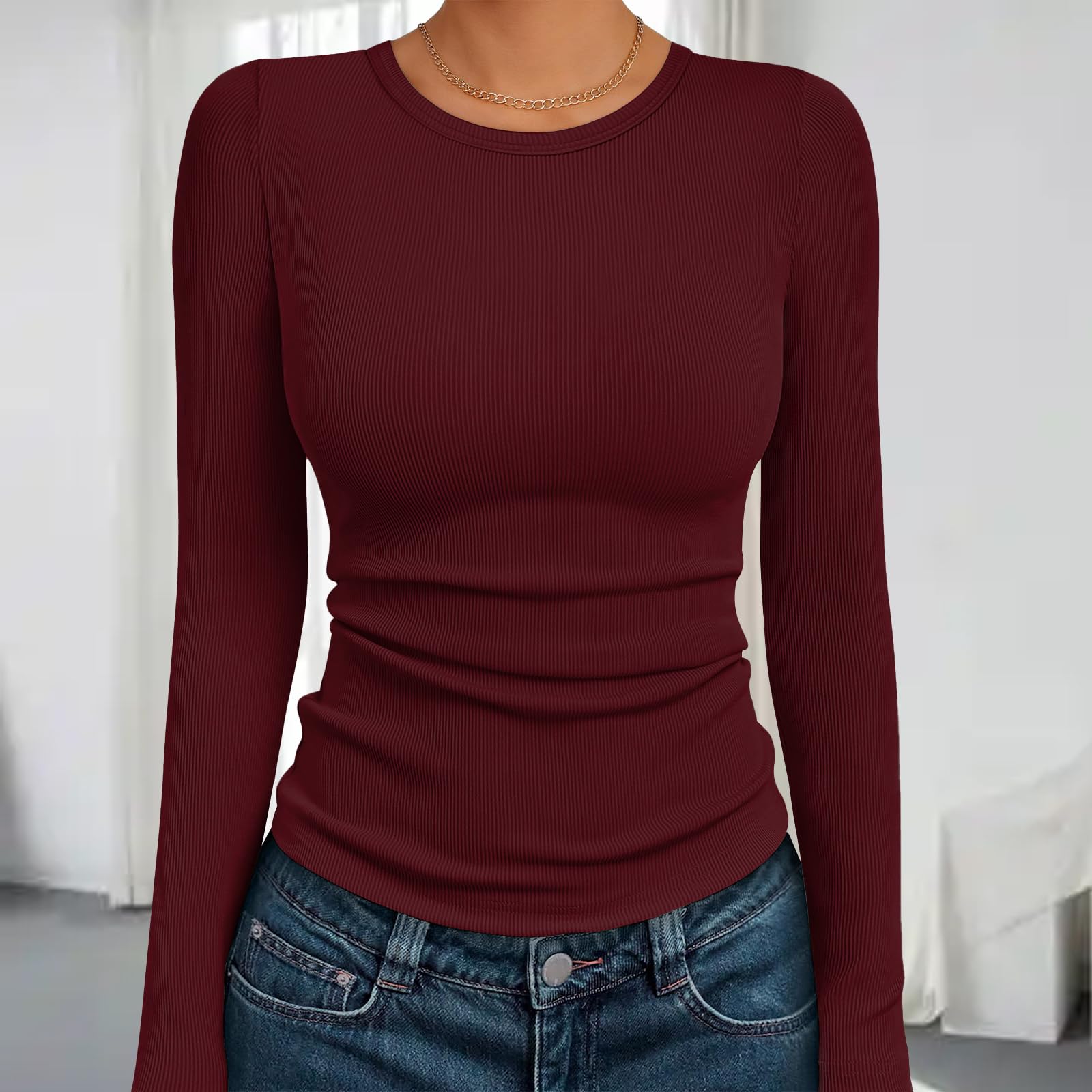 Haul Price $2.77—Women's Ribbed Knit Long Sleeve, Blouse Stretch Soft Business Casual Shirt For Women, Tummy Control Basic Top (Wine Red,Medium).