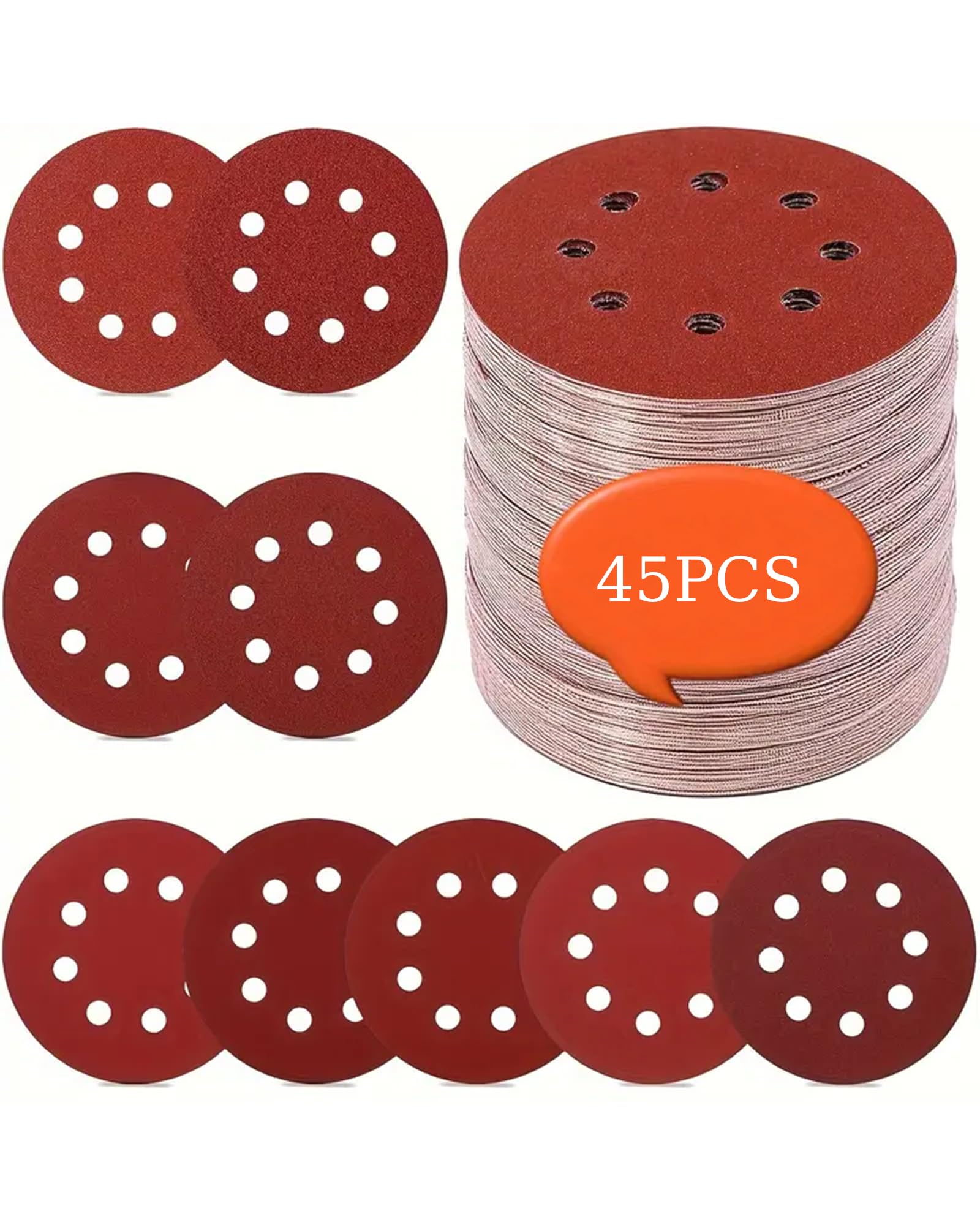 Haul Sale $2.52—45PCS 5-Inch Sanding Discs – Assorted 9 Grits Hook ⁘ Loop Sandpaper For Woodworking, Metal Refinishing, Surface Smoothing ⁘ Paint Prep, Compatible ...