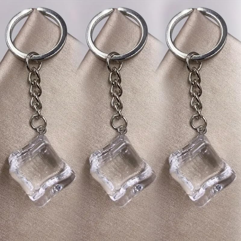 Goldfish suspended in ice cube design • — 3pcs Acrylic Ice Cube Keychain, Summer Cool Keyring Ornament Key Chain Bag Purse Charm Accessories Gift for Women — $1.04Find out more.