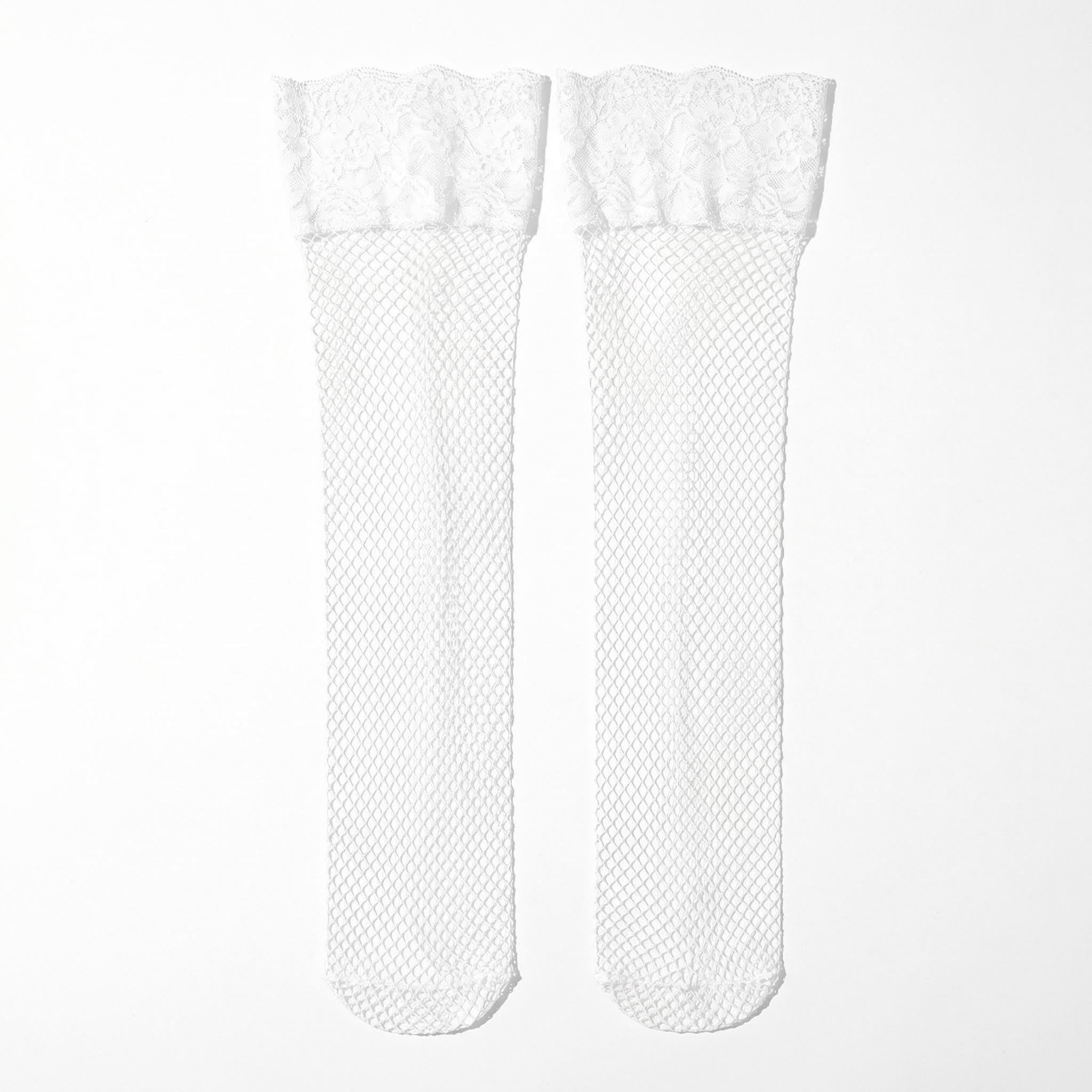 Thigh High Stockings White Lace Top Netted Over-the-Knee Legwear 1pc Comfort Stretch Fit For Outfit Layering Parties Stage Looks Photoshoots Travel. Price $1.18 Haul